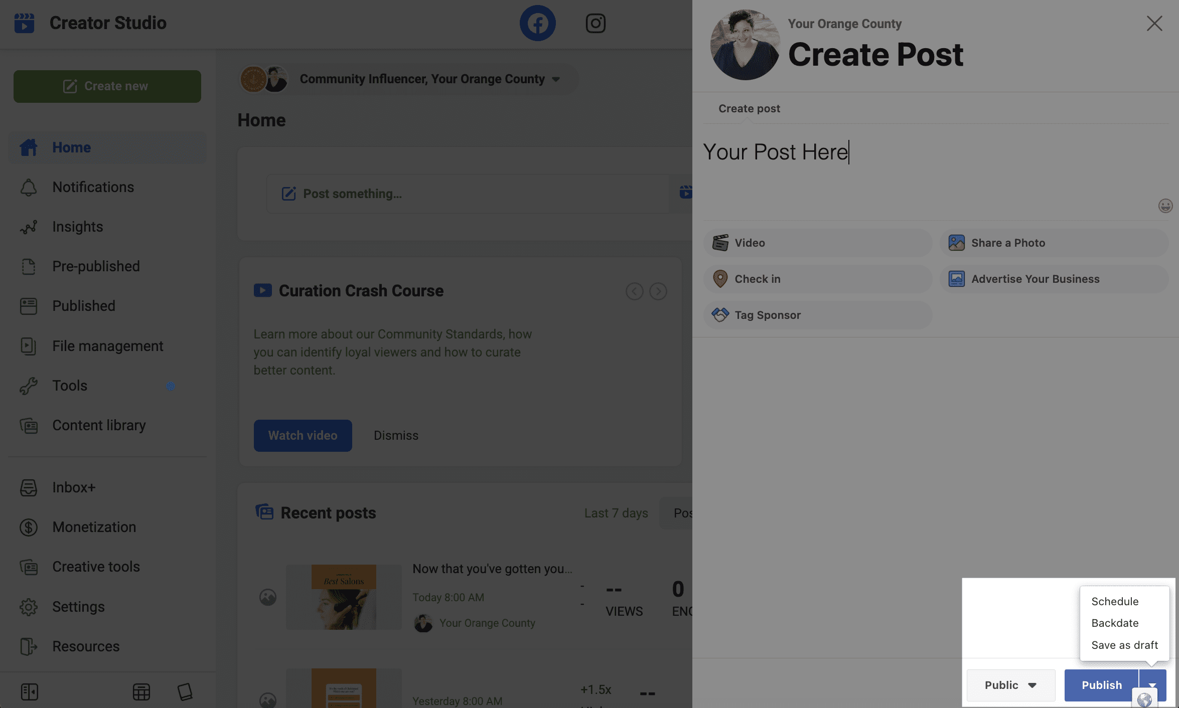 I like to use the Creator Studio inside Facebook.